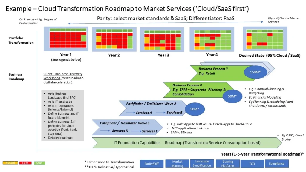 Example – Cloud Transformation Roadmap to Market Services (‘Cloud/SaaS first’)